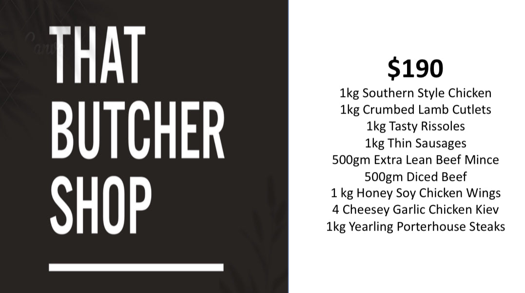 1kg Southern Style Chicken 1kg Crumbed Lamb Cutlets 1kg Tasty Rissoles