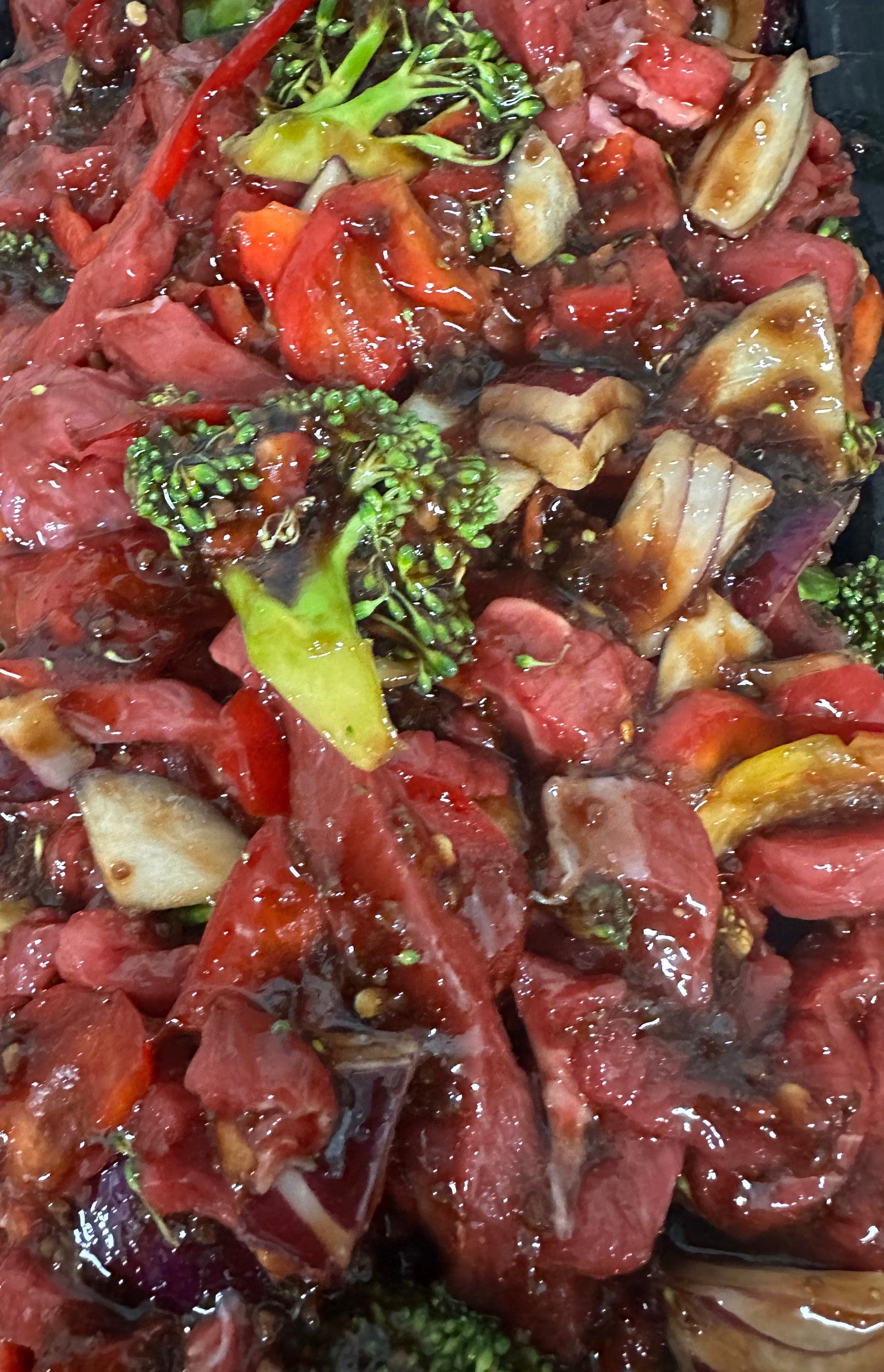 Yearling beef stirfry strips immersed in our house made black bean sauce with fresh vegetables