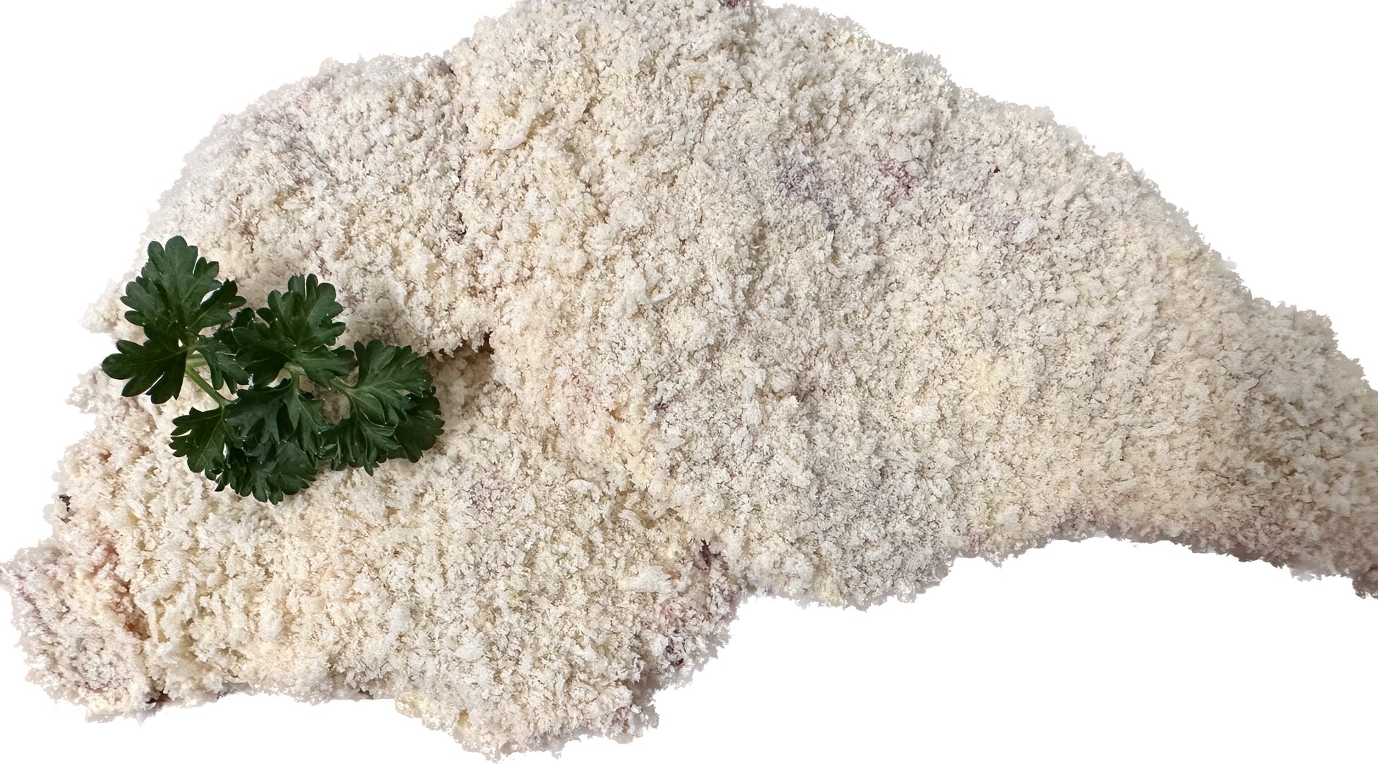Tenderised beef dusted in Panko Bread Crumbs, Add some Maggi Gravi , diced bacon and onion and you will have the family asking for more!