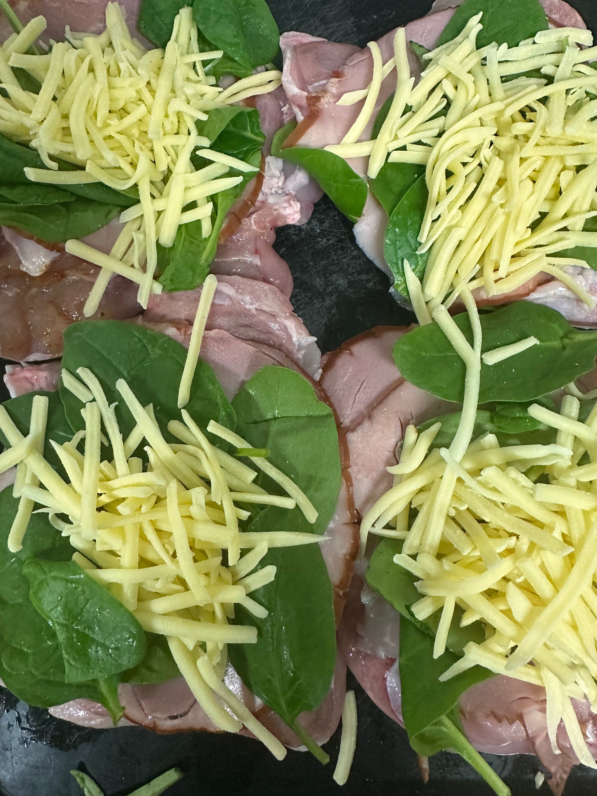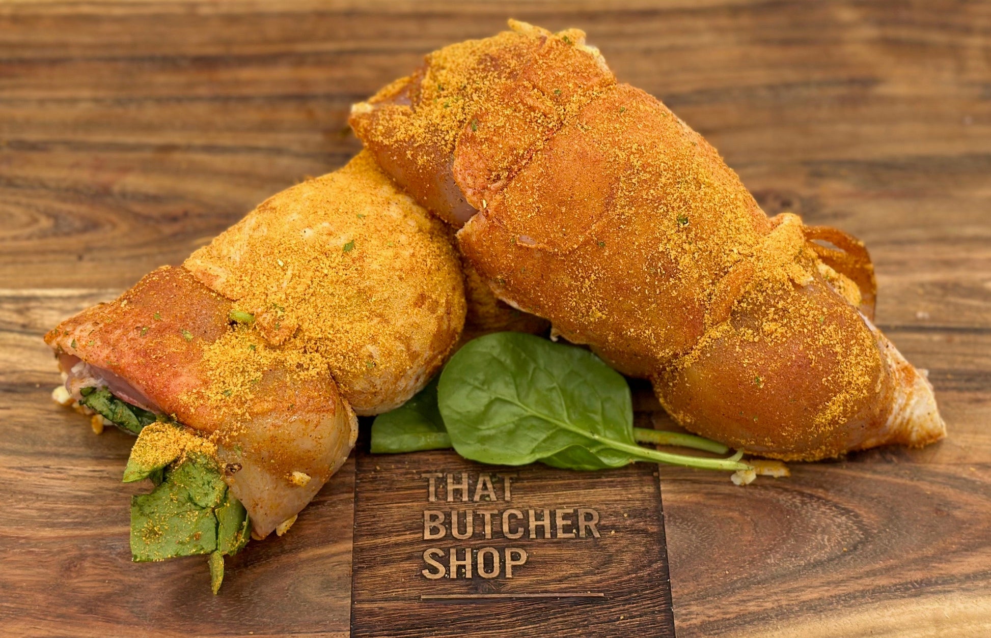 La Ionica chemical free chicken maryland fillet stuffed with smoked ham and tasty cheese, baby spinach and dusted with our in house made seasoning.