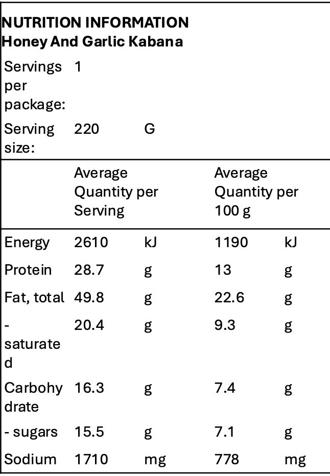 Honey and garlic kabana, a savoury blend with sweet honey and bold garlic, delivering a delightful taste fusion.