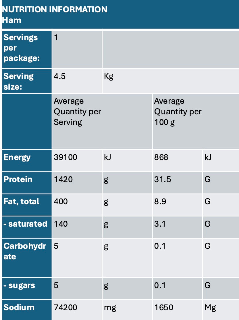 Our ham is smoked and cured on site and is the perfect addition to any lunch box, christmas lunch or just in the fridge for any meal. Our ham won Silver medal in the National small goods awards.